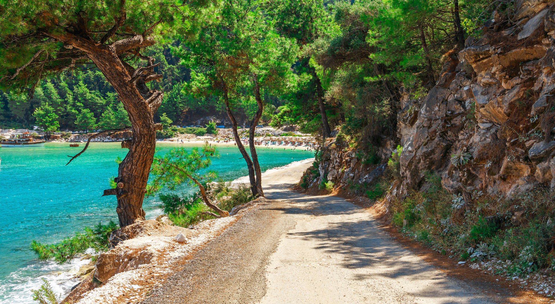 Μια κυκλική διαδρομή περίπου 3 ωρών που αγκαλιάζει όλη τη Θάσο, προσαρμόζεται στο ανάγλυφο της και ακολουθεί τα ίχνη της αλμύρας, του πεύκου και της γεύσης. Από τον Λιμένα ξεκινά μια διαδρομή μέσα από ελαιώνες, αρχαία μνημεία, πευκόφυτες πλαγιές και ονειρεμένες παραλίες. Στον Λιμένα, η Αρχαία Αγορά και το θέατρο δίνουν τον τόνο ενός πολιτισμού που χάνεται στο βάθος της ιστορίας. Στο δρόμο προς τον Πρίνο, την Καλλιράχη και τις Μαριές, οι πλαγιές μοσχοβολούν πεύκο, κουμαριές και ρίγανη. Στη Γκιόλα, η πιο διάσημη φυσική πισίνα της Ελλάδας, σας καλεί σε ένα αξέχαστο λουτρό, μια μοναδική εμπειρία. Στην Αλυκή, εκεί όπου η θάσια γη προσφέρει το «χιόνι», το λευκότερο μάρμαρο του κόσμου, τα αρχαία λατομεία φτάνουν μέχρι τη θάλασσα, ενώ μάρμαρο και αλμύρα σμίγουν και ταξιδεύουν στους αιώνες.