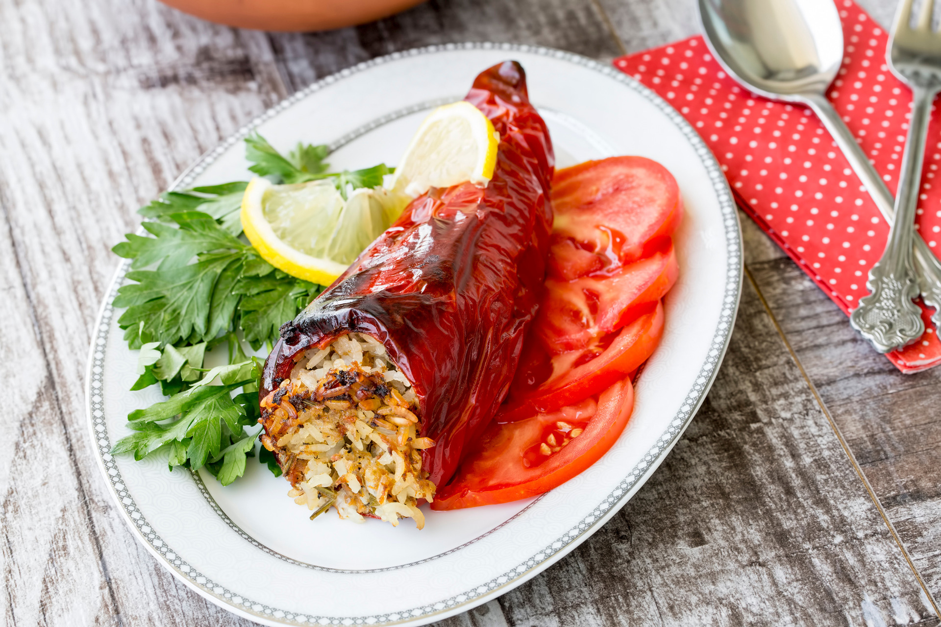 Απλό αλλά πολύ νόστιμο πιάτο με τοπικό χαρακτήρα. Οι κόκκινες πιπεριές Φλωρίνης γεμίζονται με φέτα, αυγό και μυρωδικά, ψήνονται στον φούρνο με λίγο ελαιόλαδο και ρίγανη και γίνονται τρυφερές, αρωματικές και γεμάτες νοστιμιά. Το σερβίρισμα απαιτεί προσεκτικό ξεφλούδισμα που χαρίζει ακόμα πιο φίνα εικόνα.