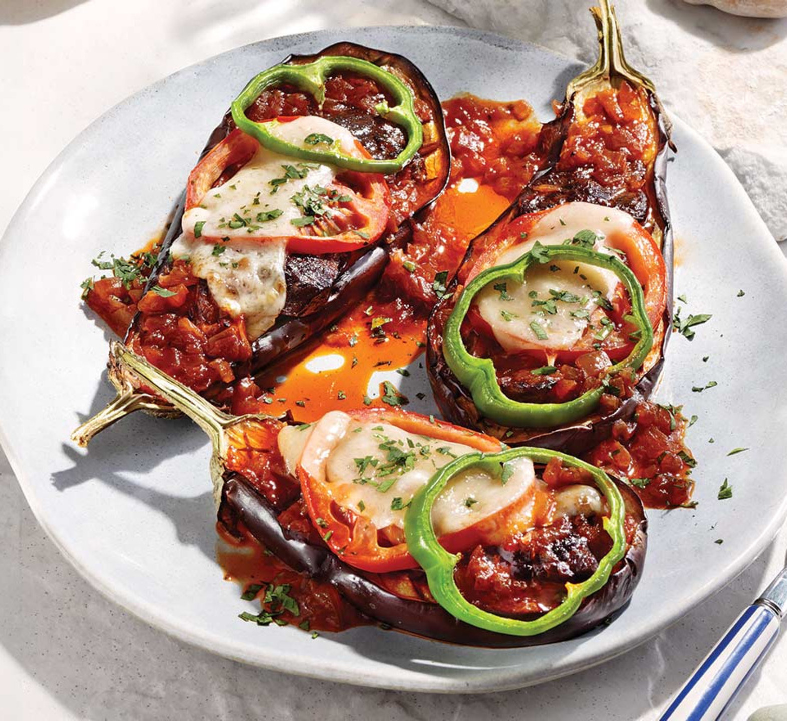 Τυπικό έδεσμα, με μελιτζάνες γεμιστές και κοκκινιστό μοσχάρι. Παίρνει το όνομά του από την εικόνα που έχει το πιάτο, καθώς η μελιτζάνα θυμίζει ρασοφορεμένο καλόγερο. Οι μελιτζάνες, αφού ψηθούν, γίνονται μαλακές, δημιουργώντας ένα ιδανικό περίβλημα για τη γέμιση. Το κρέας, μαγειρεμένο με ντοματίνια, κρεμμύδι και βότανα, αποκτά τρυφερή υφή και σπάνια γεύση. Οι φέτες ντομάτας προσθέτουν δροσιά, ενώ το μείγμα γραβιέρας Νάξου χαρίζει αλμυρή ένταση και χρυσαφένια κρούστα. Σερβίρεται ζεστό, συνοδεία τραγανού ψωμιού και ναξιώτικου κρασιού.