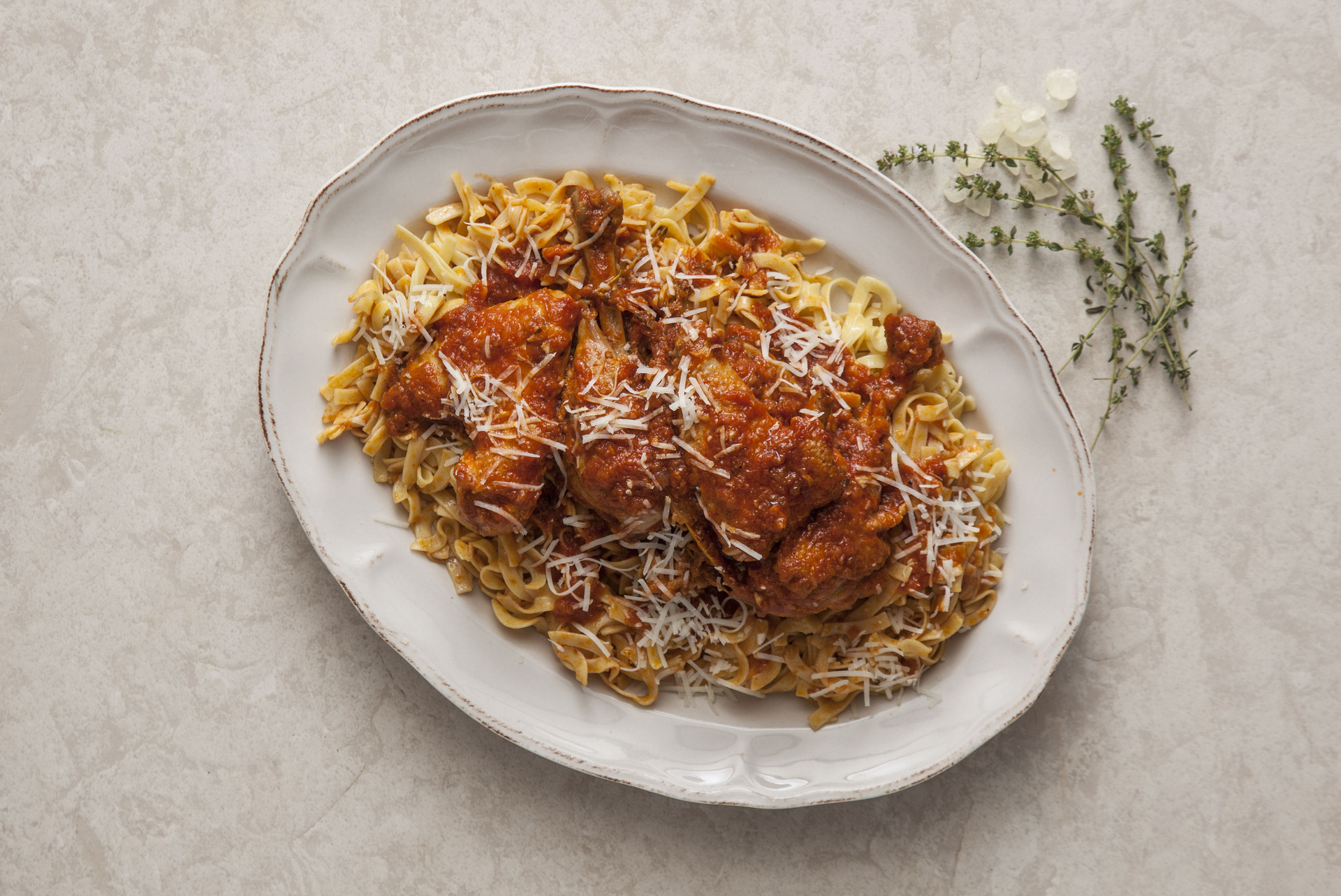 Πιάτο με το περίφημο παραδοσιακό ζυμαρικό του νησιού, που θυμίζει λεπτές χυλοπίτες ή ψιλές ταλιατέλες και φτιάχνεται με αλεύρι, αυγά, γάλα και αλάτι. Ο κόκορας μαγειρεύεται σε σάλτσα ντομάτας με κρεμμύδι, σκόρδο, κρασί και πολλά αρωματικά. Στη συνέχεια η σάλτσα δένει με τα φλωμάρια, που βγάζουν όλη τη νοστιμιά. Το πιάτο ολοκληρώνεται με τριμμένο μελίχλωρο ή άλλο τοπικό τυρί, και συνοδεύεται από κόκκινο τοπικό κρασί.