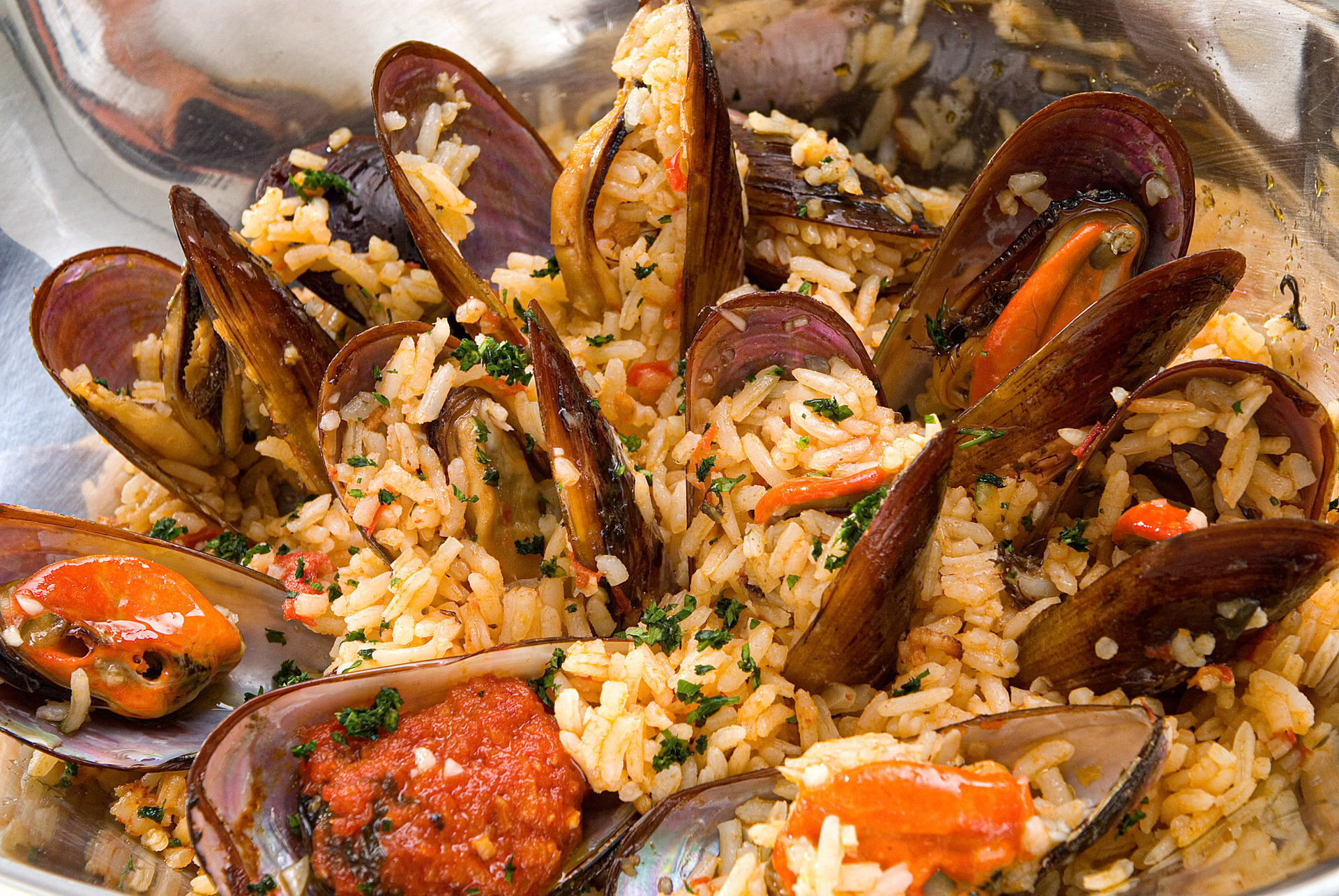Θαλασσινό φαγητό με έντονο άρωμα και πλούσια γεύση. Τα φρέσκα μύδια μαγειρεύονται με κριθαράκι, ντομάτα, κρεμμύδι και σκόρδο, ενώ το ούζο και το μπαχάρι χαρίζουν ιδιαίτερο χαρακτήρα. Αφού ψηθεί προστίθεται πικάντικη φέτα, και τρώγεται ζεστή, με φρεσκοτριμμένο πιπέρι, καλή παρέα και καλό κρασί ή τσίπουρο.