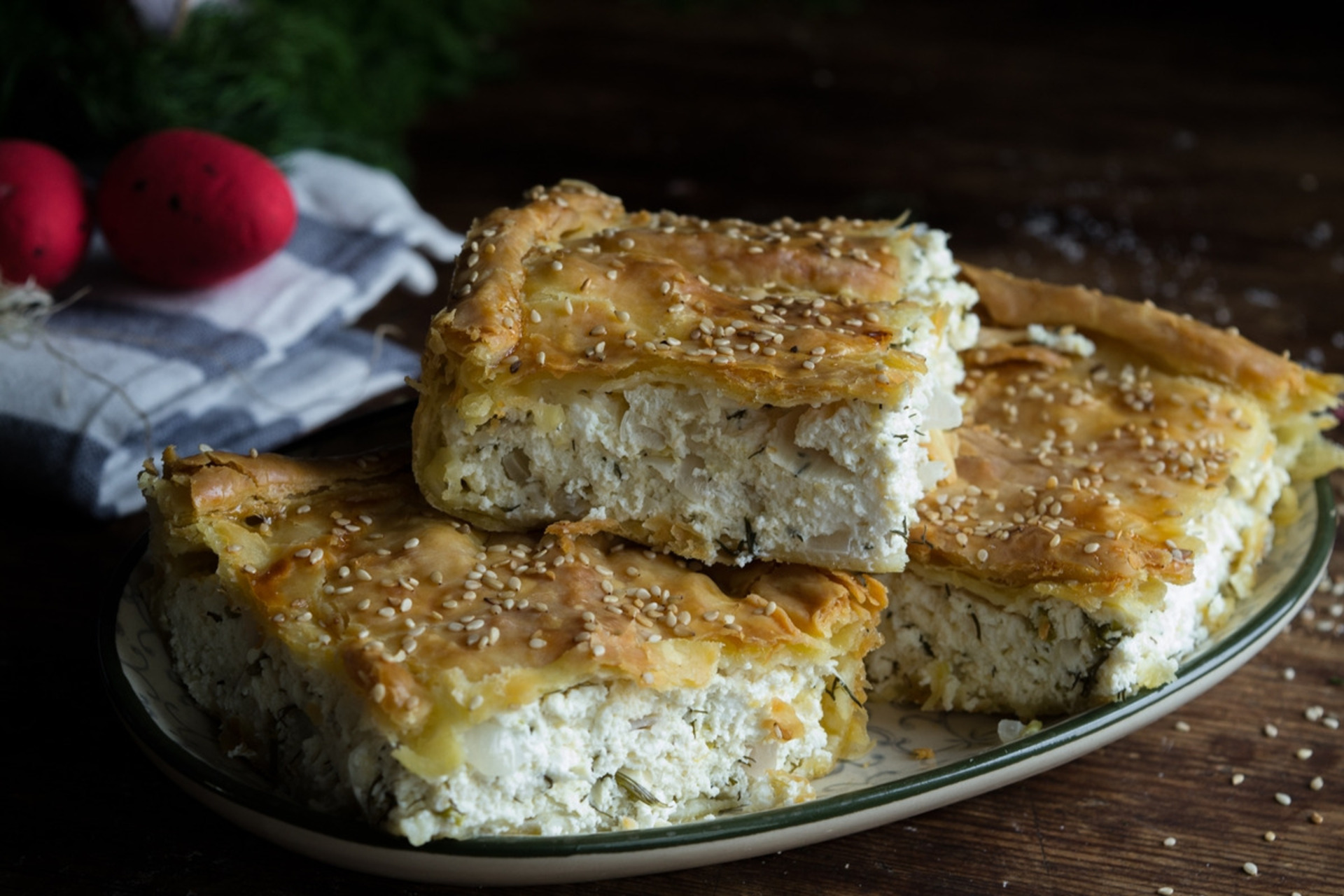 Χαρακτηριστική πίτα της Μυκόνου που συνδυάζει την ιδιαίτερη νοστιμιά του παραδοσιακού τυριού του νησιού, της τυροβολιάς, με την απλότητα του κρεμμυδιού. Τα κρεμμύδια, όταν ψήνονται, γλυκαίνουν και ισορροπούν όμορφα με την ελαφριά αλμύρα και οξύτητα της τυροβολιάς, ενώ τα φρέσκα χόρτα και μυρωδικά, όπως σέσκουλα, άνηθος και μάραθο, δίνουν δροσιά και άρωμα. Η ζύμη είναι λεπτή και τραγανή, ενώ η γέμιση ζουμερή και αφράτη. Συνοδεύεται ιδανικά με λευκό κρασί.