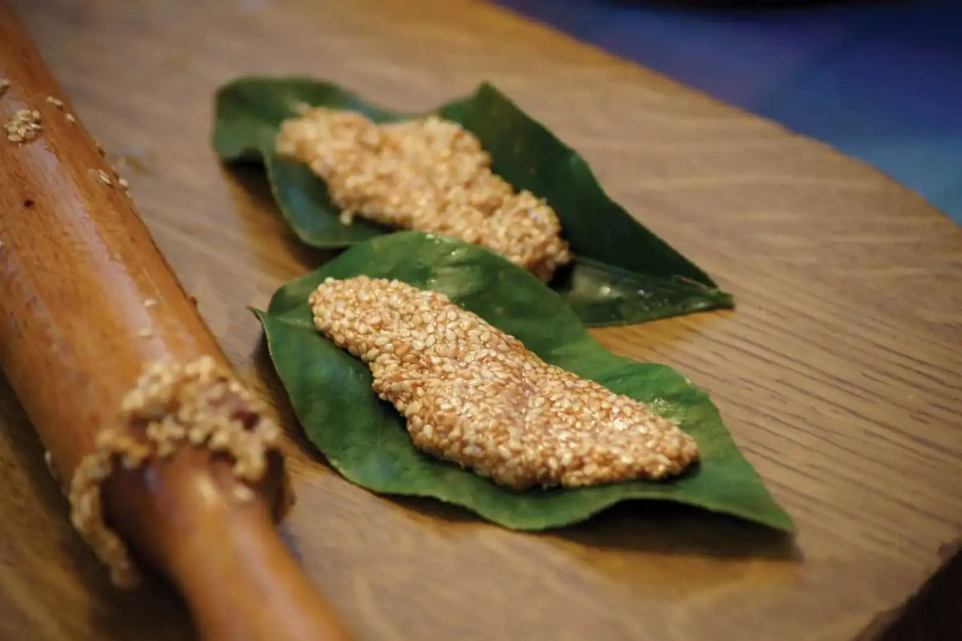 Στη Σεριφιώτικη παραλλαγή του παστελιού η τραγανή υφή του σουσαμιού συναντά το άρωμα του μελιού σε ένα μοναδικό συνδυασμό. Είναι γλυκό συνδεδεμένο με τους γάμους και με άλλες χαρές. Το μέλι και το σουσάμι, σύμβολα ευζωίας και αφθονίας, πλάθονται σε ένα μείγμα αρωματισμένο με κανέλα και λεμόνι που απλώνεται σε μαρμάρινη πλάκα, κόβεται σε ρόμβους και σερβίρεται πάνω σε λεμονόφυλλα, που χαρίζουν δροσερό άρωμα.